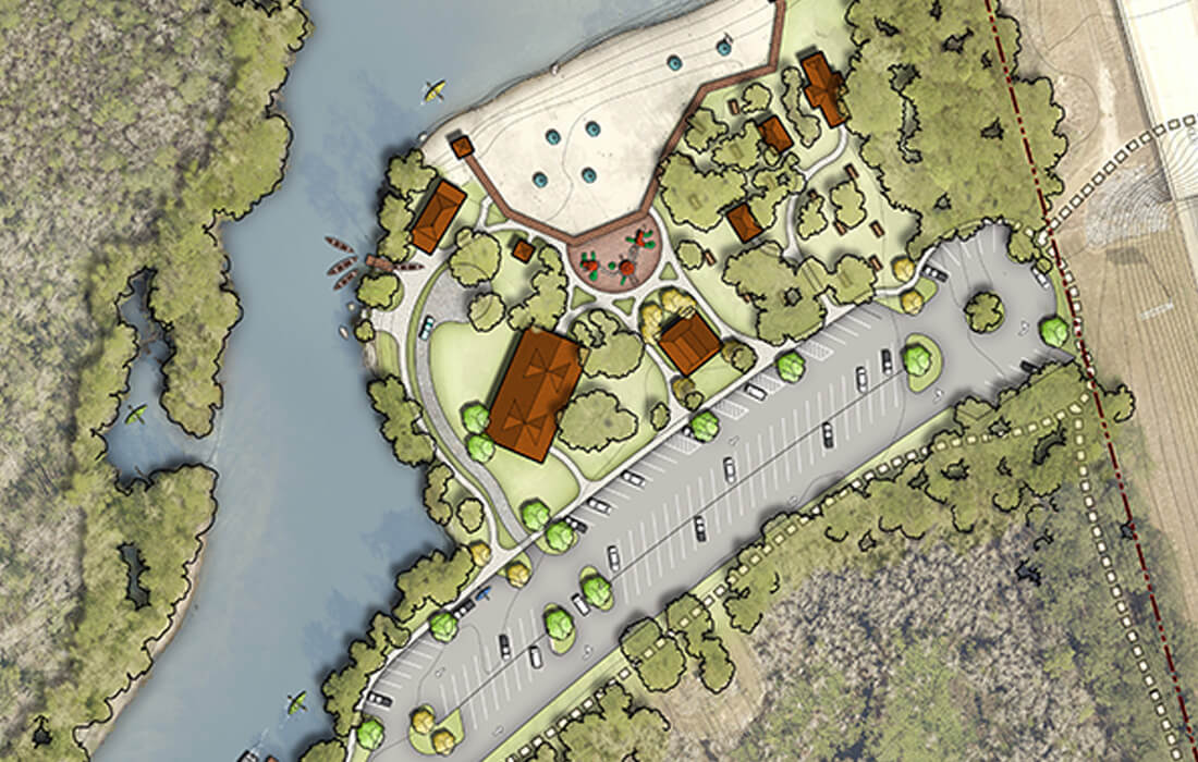 Chickasabogue Park is an 1,100-acre park located in West Central Mobile County. Proposal features of the master plan include swim/ beach area, boat launch, canoe/kayak trails, group camping, RV campgrounds, rental cabins, primitive campsites, day use areas, multi-use trails, nature areas, splash pad, destination playground, ropes course, conference center/lodge, and other nature based recreation facilities. The Master Plan presents in a graphic form the site specific design and location of existing and proposed park, recreation, and support facilities. The Plan creates a vision for the park’s future and represents a design effort based upon community input, site analysis, goals, and objectives.