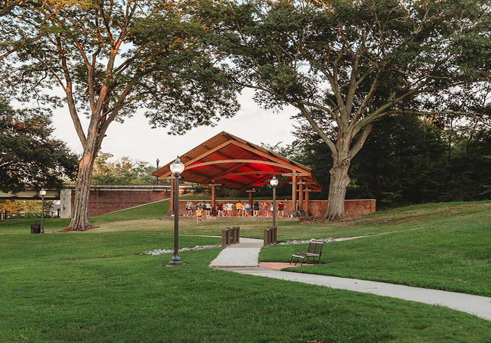 WAS Design served as the prime consultant for this park in the heart of downtown Clinton, Mississippi. After producing the Master Plan, WAS carried the drawings through construction documentation and served as the City’s advisor throughout the bid and construction phases. The park features a walking trail, gateway signage, playground with synthetic turf surfacing, picnic pavilion, and amphitheater structure. Both the pavilion and amphitheater were supplied through the general contractor by a design-build means of delivery. The gateway signage is highlighted by a repurposed caterpillar play feature that was salvaged