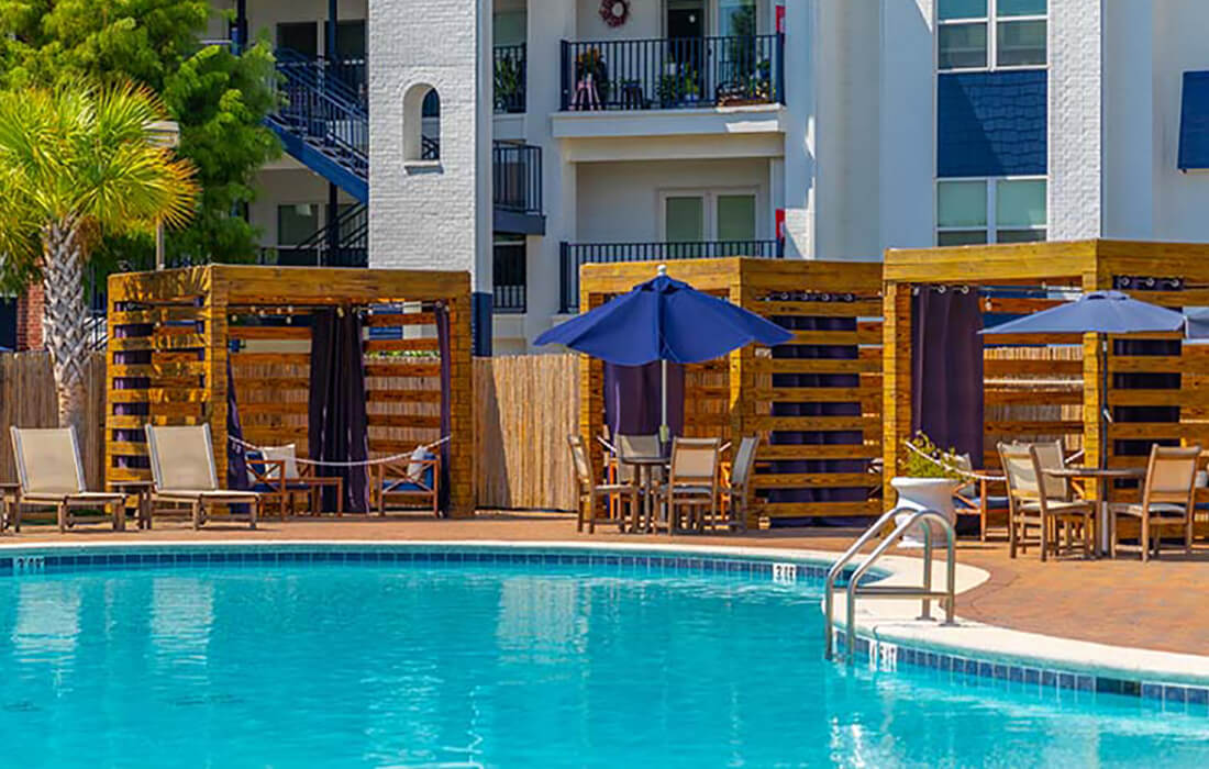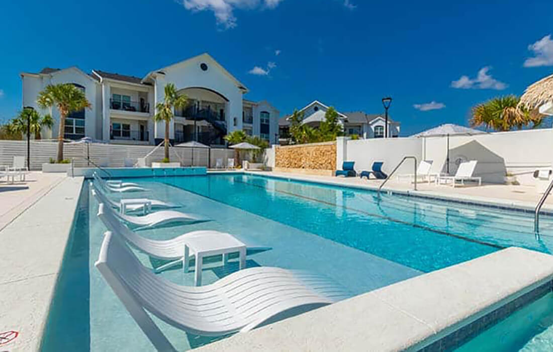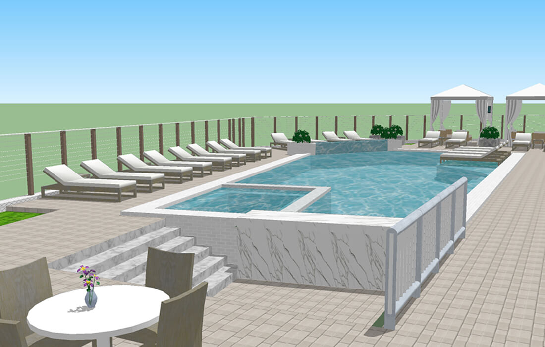 WAS Design undertook the pool addition project for the vibrant live, work, and play community in Gulf Shores. The contemporary amenity space boasts a water-smart irrigation system, sophisticated hardscaping, and meticulously crafted landscape design. The centerpiece of this state-of-the-art oasis is a luxurious pool featuring a sun shelf adorned with lounges and a relaxing hot tub. Exclusive poolside cabanas, a sunken bar, and additional amenities cater to every leisure need. A thoughtfully designed lighting scheme further enhances the ambiance, ensuring enchanting evenings of entertainment.