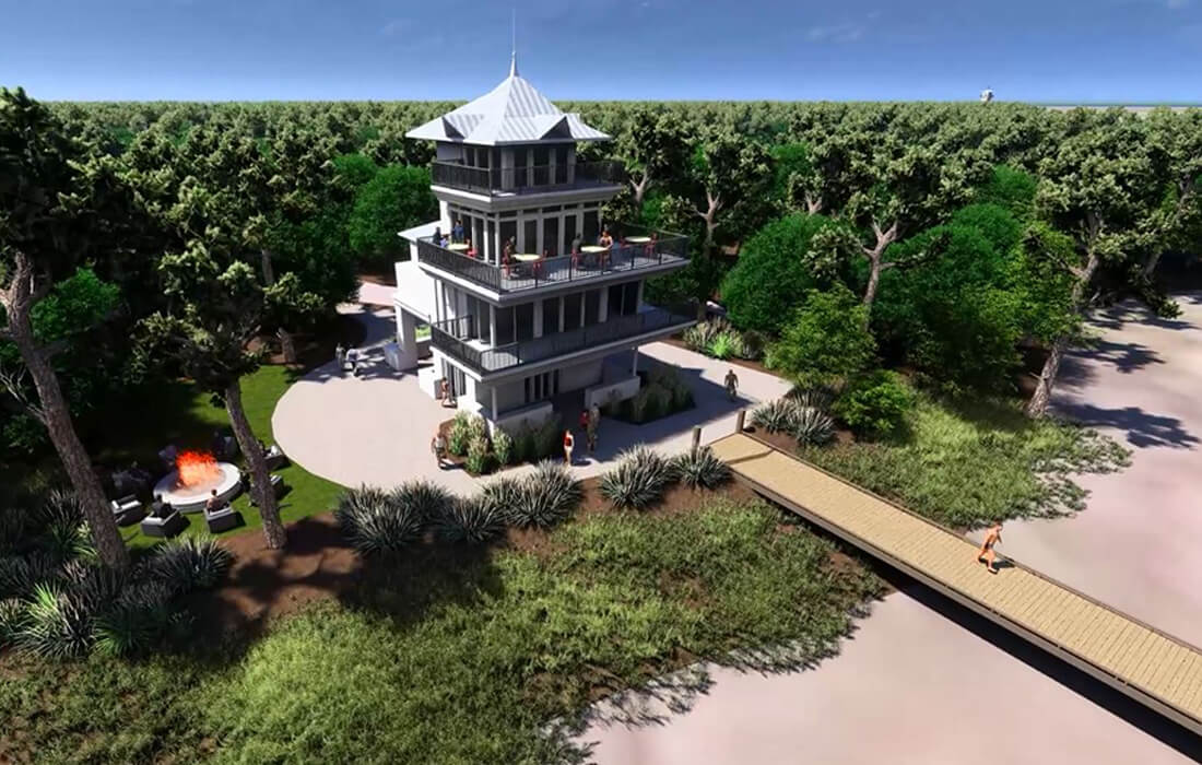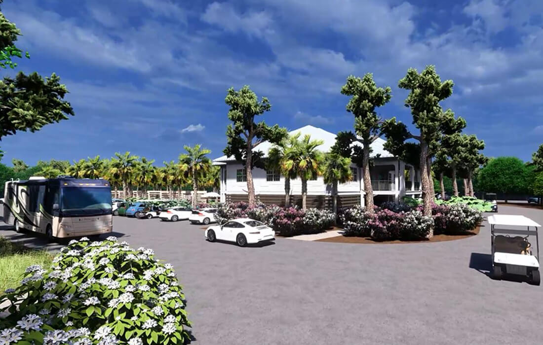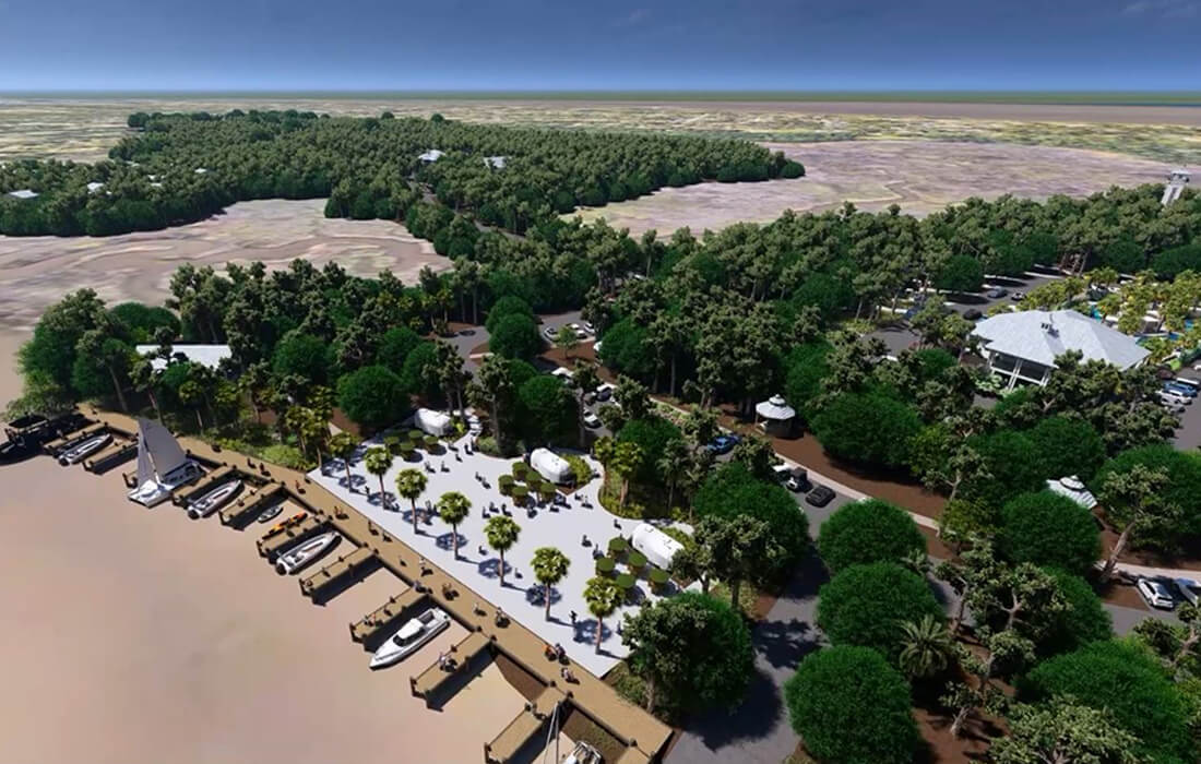 WAS Design was commissioned to create a master plan for a cutting-edge facility to be constructed on the former Pine Island Golf Course, left vacant since Hurricane Georges in 1998. The plan features 476 RV spaces, 16 treehouses, 20 resort Airstream spots and multiple pools including a lazy river with a swim-up bar. The site will also house a restaurant, boardwalks, nature trails, observation decks, and boat slips with launches.